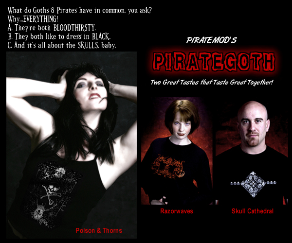 | WELCOME | BROWSE SHIRTS | TRADITIONAL | ORIGINAL | PIRATEGOTH | EXPRESS YER'SELF | JOLLY ROGER EVOLUTION | ABOUT US | CONTACT | HOME |