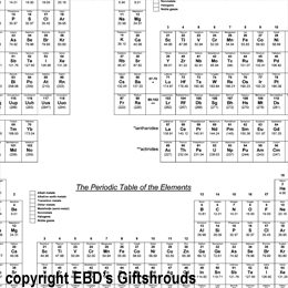 ![]() 24" x 48" (8 square feet on roll) Perioidic Tables cover your presents! Black and White Versions- See if you can color-code the elements! |