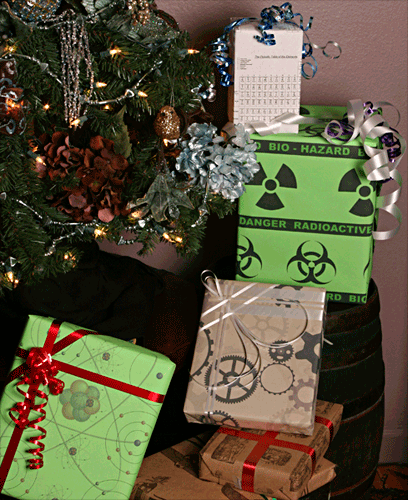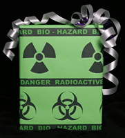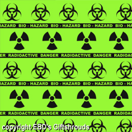 ![]() 24" x 48" (8 square feet on roll) Green GiftWrap covered in rows of one both radioactive and biohazard images and labels Perfect for Dangerous Presents! |